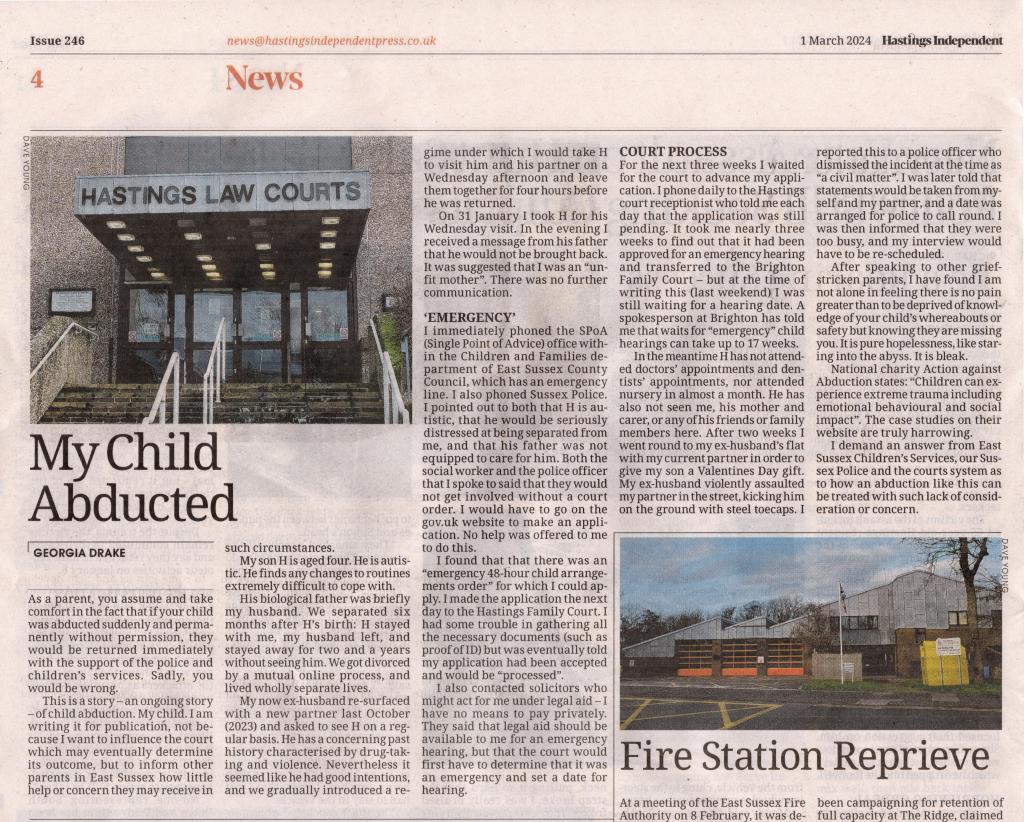 Credit image Hastings Independant Issue 246 1st Mach 2024 article author Georgiia Drake.