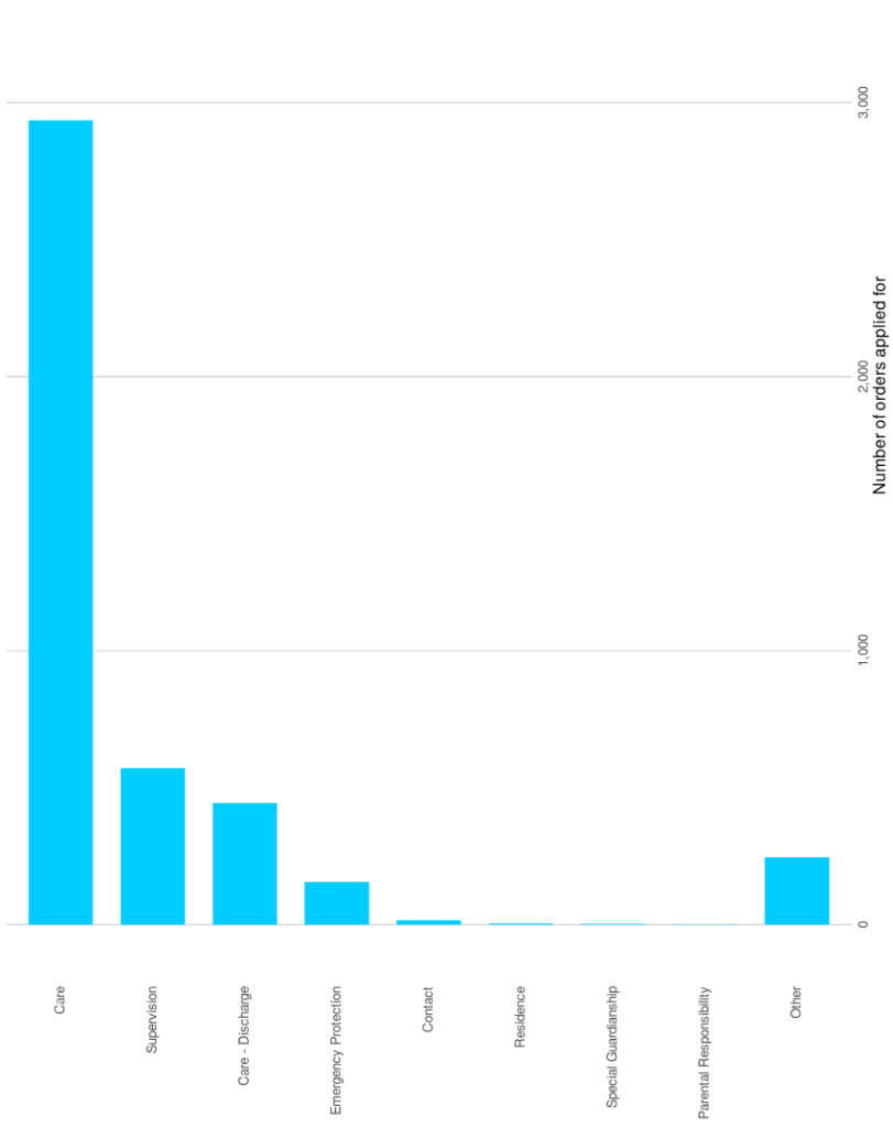 Public law applications and orders made, by order type, October 2023 to December 2023 inclusive.