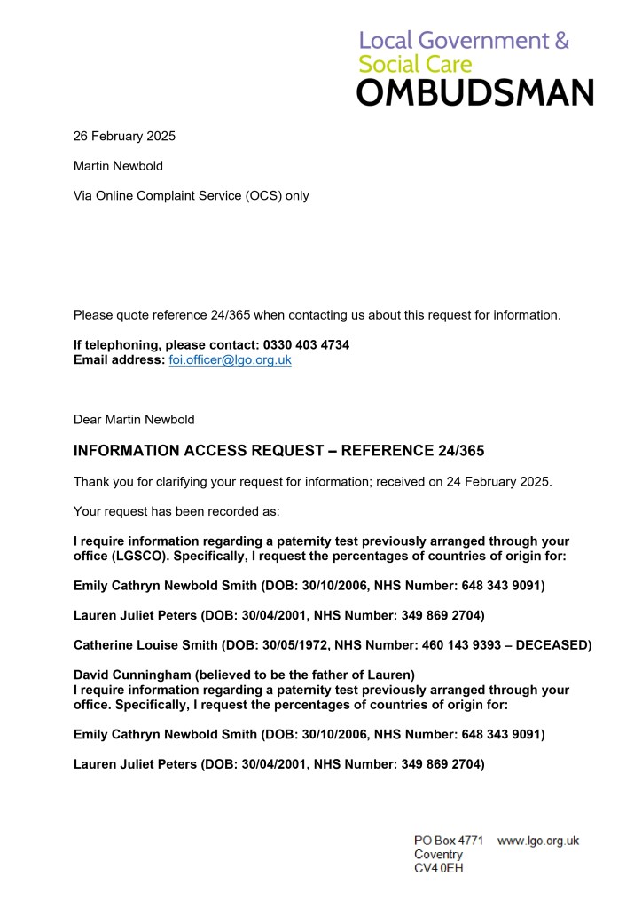 On 26 February 2025, I received a response from the Local Government and Social Care Ombudsman (LGSCO) regarding my Information Access Request (Reference 24/365). This response, issued by Mandy Cashmore, Information and Records Officer, acknowledges my request but once again fails to provide the key information that has been repeatedly requested.
