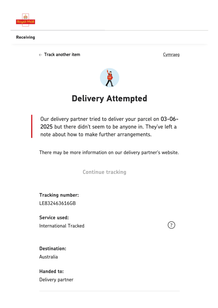 The tracking confirms arrival in Australia but no collection or acknowledgement by your team. I published the correspondence here for transparency: