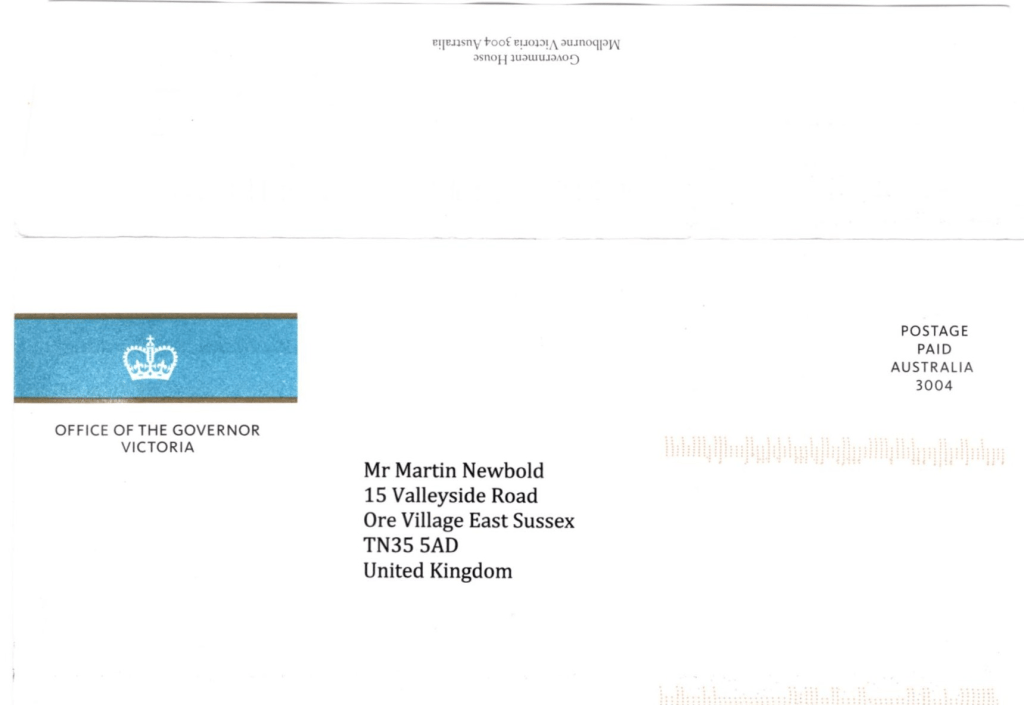 - Was sent via Royal Mail international recorded delivery, with proof of arrival in Australia.