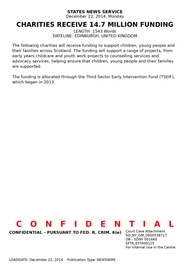 Did the Press and Journal or Evening Express publish or archive the States News Service wire dated 22 Dec 2014 (“Charities Receive 14.7 Million Funding”) of Artistic Render of the hidden document disclosed yesterday We have made this fit onto Three pages for better readability or did they suppress this real version of this document Connected to the Case United States v. Ghislaine Maxwell U.S. District Court, Southern District of New York