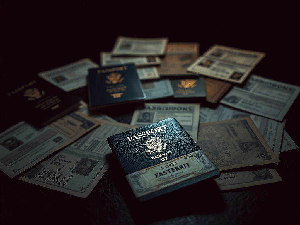 Having fake passports, an alias, or even agent-themed memorabilia can suggest deception, travel concealment, or role-playing, but it does not by itself establish government employment or agency affiliation. The badge detail, as shown here, actually points the other way because the document says it did not look like authentic credentials.