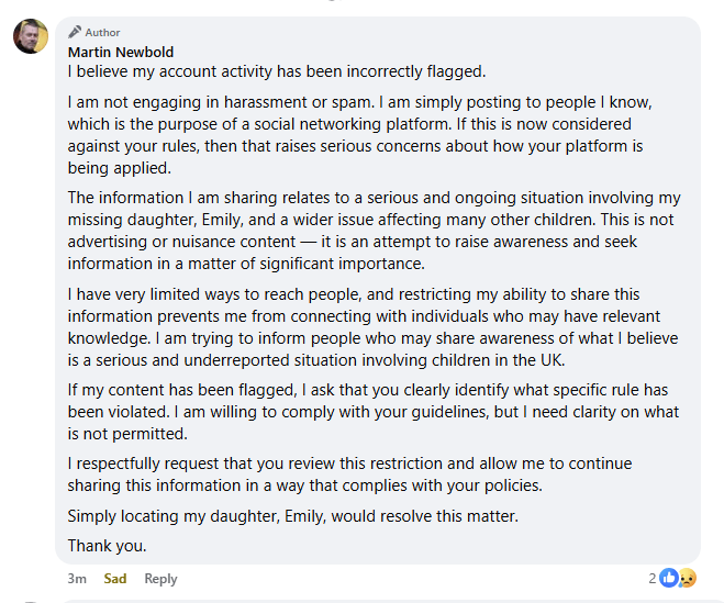 Has anyone seen Emily??? No one has seen her for over 19 Years now. My concerns grow stronger by the day. How can she be no longer on hear NHS record being born in Conquest Hospital. Why has no death certificate been provided . Is this murder while she’s been safeguarded another Baby P scandal in East Sussex what they told the judge would happen if he did nothing? Why are the Sussex Police not interested?